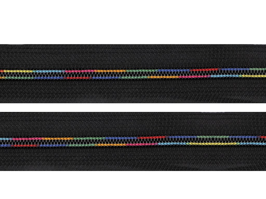 Spirálový zip v metráži upoutá vaši pozornost duhovým efektem. Využijete jej na oděvy, ale také na výrobu originálních zipových tašek nebo pouzder.