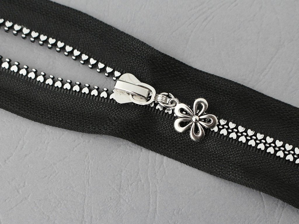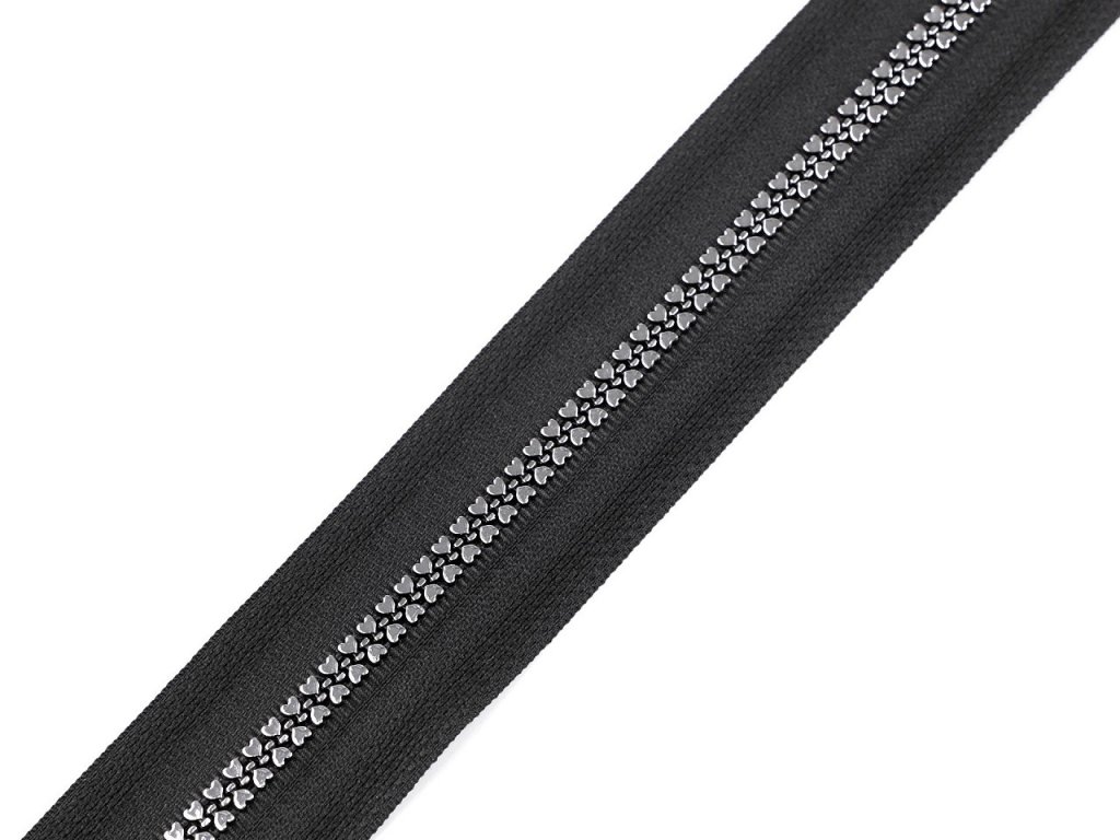 Kostěný zip v metráži má efektní designové zoubky. Využijete ho na oděvy (mikiny, bundy, kabátky), kabelky, pouzdra nebo na výrobu zipových tašek.