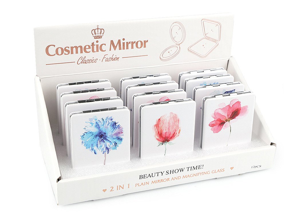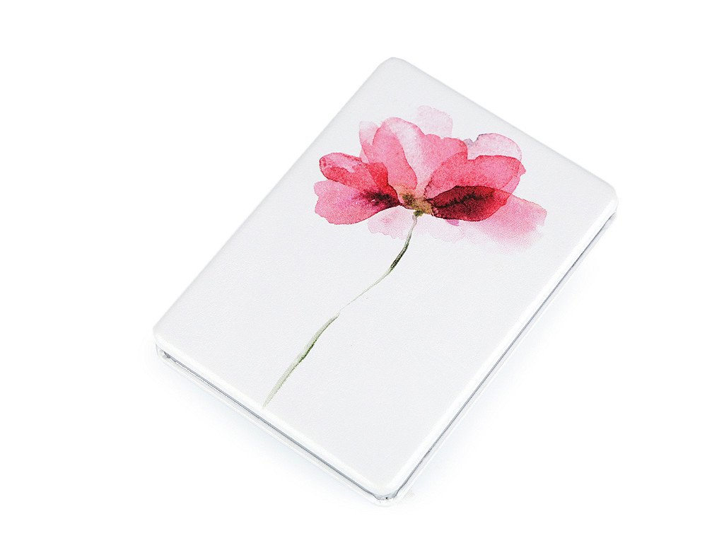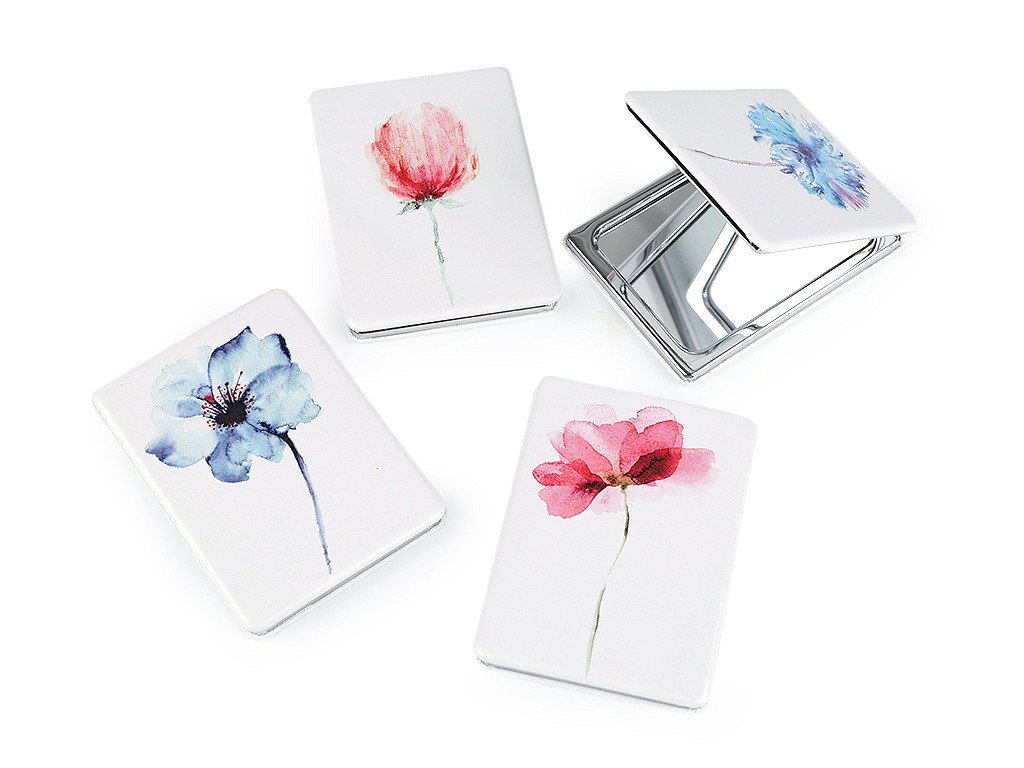 Stylové otevírací zrcátko s potiskem květiny, který připomíná akvarelovou malbu. Je výborný pomocník pro opravu make-upu během dne.