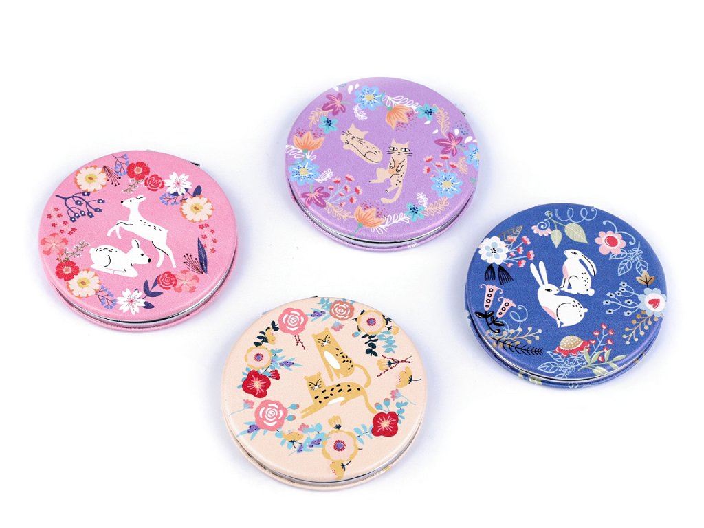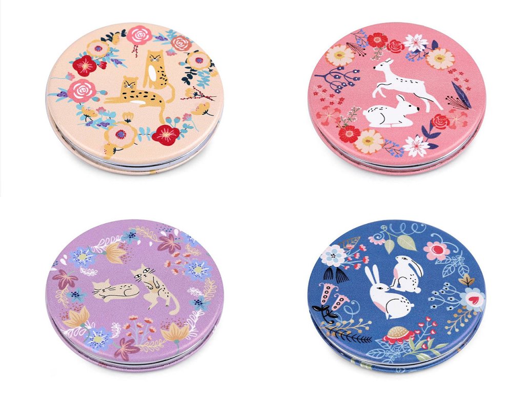Má kvalitní zpracování z eko kůže s dekorem zvířátek. Potisk je na horní i dolní straně. Uvnitř jsou 2 zrcátka, jedno je zvětšovací.